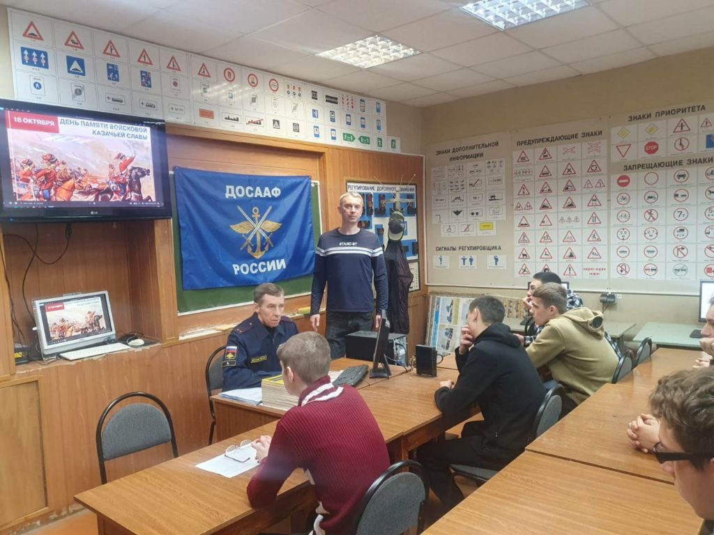 Преподаватель ПОУ «Моршанская автомобильная школа ДОСААФ России Тамбовской области» Шитиков Сергей Викторович провёл для курсантов взвода 1 ВУС познавательную программу «Слава тебе, Господи, что мы казаки».