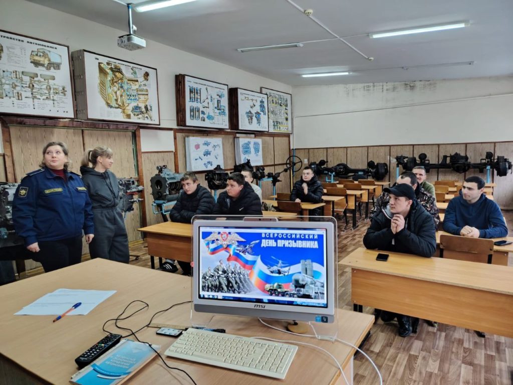 Помощник начальника отделения подготовки и призыва граждан на военную службу Казмина Е. А., рассказала курсантам о необходимости несения воинской службы и о важности получения ВУС-837 кат. «С».