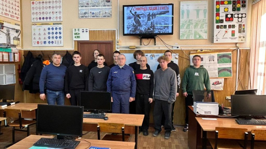 21.11.2025 года начальник ПОУ Рассказовская автошкола ДОСААФ России Афонин А.Ю провел с курсантами, обучающимися по программе подготовки водителей транспортных средств категории С ( ВУС-837) , рассказ-беседу на тему: «Сталинградская битва».